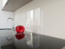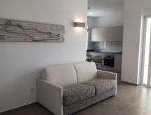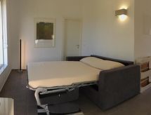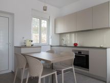 This apartment has a living room with private veranda, a double room, a kitchen and a bathroom and is perfect for couples or families. If you have up to two children there is a convertible Sofa-Bed in the living room so that you can switch between day and night mode within 10 seconds. The kitchen is well equipped with oven, cooktop, fridge with freezer, kettle, toaster and a Nespresso machine. You choose if you prefer eating in the kitchen or outside, on your private veranda with sea-view. The double room offers a massive wood queen size bed with natural Latex matress, memory foam pillows (standard or thick, you choose) and first quality cotton linen, towels and blankets. The modern arranged bathroom has a rainfall shower. Both living room and bedroom are airconditioned/heated.- Značajke smještaja