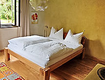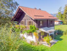 5 -sobna kuća 120 m2 na 2 etaže. Ukusno i udobno uređena: 1 bračna soba s umivaonikom. Veliki dnevni boravak s kabelskom TV (plosnatim TV ekranom), kaljevom peći. Izlaz u vrt, na terasu. Tuš, odv. WC. Gornji kat: blagovaona s švedskom peći, kutom za blagovanje i radiom. 1 bračna soba. 1 soba s 2 kreveta i umivaonikom. Kuhinja (pećnica, perilica za suđe, 4 staklokeramičke ploče za kuhanje, mikrovalna pećnica). Odv. WC. El. grijanje. Drveni pod. Balkon, terasa. Garnitura za sjedenje, ležaljke. Vrlo lijep pogled na planine i krajolik. Na raspolaganju: Internet (wireless LAN [WLAN], besplatan). Dodatna informacija: kuća za nepušače. 1 kućni ljubimac / pas dozvoljen. Protupožarni alarm. 50336-000849-2020- postrojenja