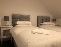 3 -sobni apartman na 2 etaže. Prostrano i svijetlo, komforno i ukusno uređen: otvoreni dnevni boravak s TV-om, plosnatim TV ekranom i DVD-om. 1 soba s 2 kreveta. Otvorena kuhinja (4 ploče za kuhanje, pećnica, mikrovalna pećnica, zamrzivač) s stolom za blagovanje. Grijanje. Gornji kat: 1 soba s 2 kreveta. 1 soba s 1 krevetom. Kada/tuš/WC. Grijanje. Na raspolaganju: perilica za rublje, sušilica. Internet (wireless LAN [WLAN], besplatan). Dodatna informacija: kuća za nepušače.- Značajke smještaja