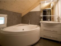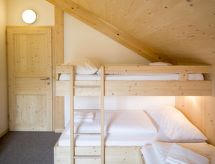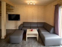 "Wellness", 5 -sobni chalet 100 m2 na 2 etaže. Svijetlo, komforno i s puno drva uređen: predsoblje. Dnevni boravak/blagovaona s stolom za blagovanje i TV-om sa sat. prijemnikom (plosnatim TV ekranom). 3 bračne sobe. 1 soba s 2 kreveta i 1 x 2 kreveta na kat. Otvorena kuhinja (pećnica, perilica za suđe, 4 staklokeramičke ploče za kuhanje, el. aparat za kavu, kombinirana mikrovalna pećnica). 2 x kada, odv. WC, hidromasažnom kadom. Komforno uređeno u ladanjskom stilu. Balkon, terasa. Vrlo lijep pogled na planine, skijašku stazu i krajolik. Na raspolaganju: sauna. Internet (wireless LAN [WLAN], besplatan). Dodatna informacija: kuća za nepušače. Protupožarni alarm, vatrogasni aparat.- postrojenja