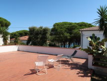 3 -sobna kuća 50 m2. Svrsishodno uređena: dnevni boravak/blagovaona s kutom za blagovanje, TV-om sa sat. prijemnikom i el. peći. Izlaz na terasu. 1 bračna soba. 1 soba s 2 kreveta. Mala, otvorena kuhinja (pećnica, 4 plamena za kuhanje, zamrzivač). Izlaz na terasu. Tuš/bidet/WC. Bez grijanja. Terasa 16 m2 (natkrita), velika terasa 80 m2. Garnitura za sjedenje, ležaljke (3). Na raspolaganju: perilica za rublje, visoka dječja stolica, dječji krevetić do 2 godine. Parking na 50 m. Dodatna informacija: apartman za nepušače. Najviše 1 kućni ljubimac / pas dozvoljen. Na licu mjesta nema naplate dodatnih troškova.- postrojenja