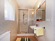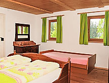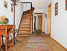 6 -sobna kuća 150 m2. Komforno i udobno uređena: predsoblje. Dnevni boravak s 1 kaučem za 1 osobu, kutom za blagovanje i TV-om sa sat. prijemnikom (plosnatim TV ekranom), kaljevom peći. 1 bračna soba. Kuhinja/dn. boravak (pećnica, perilica za suđe, 4 staklokeramičke ploče za kuhanje, kuhalo za vodu, mikrovalna pećnica, el. aparat za kavu) s stolom za blagovanje. Tuš, tuš/WC, odv. WC. Gornji kat: 1 bračna soba. 3 sobe, svaka soba s 1 krevetom i 1 bračnim krevetom. Dnevni boravak je uređen u seoskom stilu. Balkon. Ostava. Vrlo lijep pogled na krajolik. Dodatna informacija: apartman za nepušače.- postrojenja