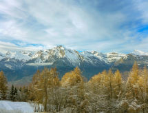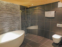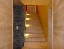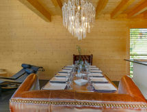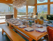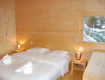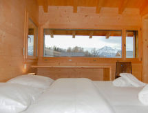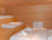 "Woovim 14", 6 -sobni chalet 250 m2. Luksuzno i s puno drva uređen: veliki dnevni boravak/blagovaona s kliznim vratima, panoramskim prozorom prema sjeveru s švedskom peći, kabelskom TV i DVD-om. Izlaz na terasu. 1 velika soba s 1 franc. krevetom (180 cm, dužina 200 cm), kabelskom TV. Otvorena kuhinja (pećnica, perilica za suđe, mikrovalna pećnica, el. aparat za kavu, Doze za mašinu za kavu (nespresso) uz doplatu, raclette roštilj, set za fondue (sir)) s barom. Tuš/WC. Grijanje. Donji kat: 1 velika soba s 1 franc. krevetom (160 cm, dužina 200 cm), kabelskom TV. 1 velika soba 28 m2 s 3 kreveta (80 cm, dužina 190 cm), 1 franc. krevetom (160 cm, dužina 200 cm), kabelskom TV. Tuš, odv. WC, kada/tuš/WC, duplim umivaonikom, Sauna. Gornji kat: 1 soba s 2 x 2 kreveta na kat (90 cm, dužina 190 cm), tušem i duplim umivaonikom. 1 soba s 1 franc. krevetom (160 cm, dužina 200 cm), tušem, duplim umivaonikom i kabelskom TV. Odv. WC. Terasa 80 m2, prema sjeveru i prema zapadu. Garnitura za sjedenje. Vrlo lijep panoramski pogled na planine i dolinu. Na raspolaganju: sauna, visoka dječja stolica, dječji krevetić do 2 godine, sušilo za kosu. Internet (wireless LAN [WLAN], besplatan). Parking (3 automobila), garaža, visina 200 cm, širina 220 cm. Dodatna informacija: apartman za nepušače.- postrojenja