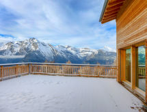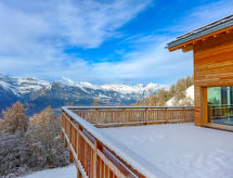 Vrlo moderni, lijepi, luksuzni chalet "Woovim", na 3 kata, godina izgradnje 2014. Na rubu mjesta, 500 m od centra mjesta, na padini, u slijepoj ulici. Za samostalno korištenje: terasa (80 m2), roštilj. U kući: sauna, terasa za sunčanje, perilica za rublje, sušilica, grijač za skijašku obuću. Strmi prilaz autom. Zimi molimo ponijeti lance za snijeg, zimi preporučljiv pogon 4x4. Parking (za 3 automobila), garaža za 1 auto. Trgovina, trgovina živežnim namirnicama, supermarket 750 m, restoran 200 m, pješice 10 minuta do centra, vanjski bazen 200 m. Golf teren 15 km, tenis 200 m, gondola 1 km, postaja ski busa, dječji vrtić na snijegu, dječje igralište 300 m. U blizini: SPA Des Bisses 800 m. Poznata skijališta u blizini: Nendaz 4 Vallées 1 km. Pješačke staze: Les Bisses 1 km. Dodatna informacija: grupe mladih samo na upit. Besplatan ski bus.Interior