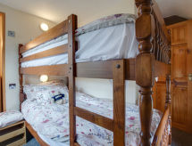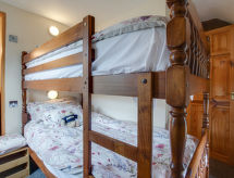 4 -sobna obiteljska kuća na 2 etaže. Prostrano i svijetlo, komforno i ukusno uređena: otvoreni dnevni boravak s TV-om, plosnatim TV ekranom i DVD-om. 1 soba s 2 kreveta i TV-om (plosnatim TV ekranom). Otvorena kuhinja (4 ploče za kuhanje, pećnica, mikrovalna pećnica, zamrzivač) s stolom za blagovanje. Kada/tuš/WC. Grijanje. Gornji kat: 1 bračna soba s 1 bračnim krevetom. 1 soba s 1 x 2 kreveta na kat. Grijanje. Garnitura za sjedenje, vrtni roštilj. Lijep pogled na krajolik. Na raspolaganju: perilica za rublje. Internet (wireless LAN [WLAN], besplatan). Dodatna informacija: kuća za nepušače.- Značajke smještaja