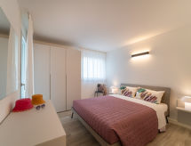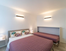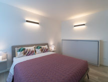 2 -sobni apartman 40 m2. Moderno uređen: dnevno-spavaća soba s 1 kaučem za 2 osobe, stolom za blagovanje i TV-om sa sat. prijemnikom. Izlaz na balkon. 1 soba s 1 bračnim krevetom i 1 rasklopnim zidnim krevetom za 1 osobu. (perilica za suđe, 4 Indukcione ploče, el. aparat za kavu). Tuš/bidet/WC. Klima uređaj, grijanje toplim zrakom. Balkon. Balkonski namještaj. Na raspolaganju: sef, dječji krevetić do 2 godine, sušilo za kosu. Internet (wireless LAN [WLAN], besplatan). Parking (1 automobil).- postrojenja