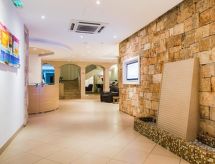 Apt. di "Sunny allot. ID 4", 3 locali per 5 persone, 52 m2, arredamento moderno. Soggiorno/camera con TV (via cavo), DVD e zona pranzo. Non permesso fumare. Internet (wifi). 1 divano letto. Camera da letto con 2 letti singoli. Camera da letto con 1 letto doppio. Cucina aperta con 2 punti cottura, forno a microonde, forno e frigorifero. Doccia/WC. Balcone 2 m2, terrazza 2 m2. Altre dotazioni: telefono, asciugacapelli, ferro da stiro. All the apartments have a sitting/dining room with a fully equipped kitchenette and bathroom. You will just love waking up every morning to that smell of the ocean from your balcony while enjoying a scrumptious breakfast and a nice coffee. All apartments have direct dial facility, TV, radio and hairdryer. They are all fully air conditioned in summer and centrally heated in winter. All the living areas are spacious and airy and apartments all enjoy cosy bedrooms, sizeable bathrooms, and balconies, most of which enjoy impeccable sea views. The Resort and Spa is most definitely embellished with all the facilities one would dream of. The Two-Bedroom seaview apartments are available with One Double Bed in sep. Bedroom , Two Twin Beds in sep. bedroom , plus a sofa bed in the living room and can sleep a maximum of 5 adults making them very convenient for families or groups. The Two-Bedroom apartments are spacious and include a large balcony overlooking open Sea Views. They enjoy natural light and a fully equipped kitchenette with a private bathroom, having a shower / tub combination with a showerhead. They enjoy natural light and a fully equipped kitchenette with a private bathroom, having a shower-tub combination with a showerhead. Daily maid service ,Air Conditioning / Heating, Alarm Clock, Ironing Board, Direct-dial phone, T.V., Fridge, Hob-Oven, Electric Kettle, Toaster, Towels, Soap, Shower Gel, Shampoo, Clothes Airer, Hair Dryer, Amenities available on request : Extra coffee tea mugs,Extra Folding Beds and Cots, DVD, Microwave, Coffee Maker, Highchairs, Fan, Rubber bath mats, Iron, Other Services at a charge, Safe, Adaptors, (against a refundable deposit), Baby Sitting Service, Laundry Service. The images used on the website are for reference only and does not always reflect the actual configuration of the product.- Le caratteristiche dell'alloggio