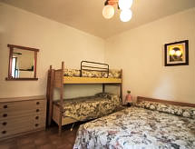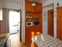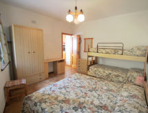 Apt. di 2 locali 35 m2, al pianterreno. Arredamento funzionale: 1 camera con 1 x 2 letti a castello, 1 letto doppio. Cucina nell'ingresso (4 punti cottura, forno, forno a microonde) con tavolo da pranzo, TV. Doccia/bidè/WC. Nessun riscaldamento. Piccolo posto a sedere all’aperto. Mobili da balcone. A disposizione: Internet (wifi, extra). Prego notare: appartamento sul cortile. Massimo 1 animale/cane consentito. CIR: 017185-CNI-00067- Strutture