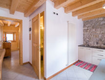 Monolocale 38 m2, al pianterreno. Spazioso e luminoso, arredamento confortevole e con molto legno: 1 camera matrimoniale con TV (satellite) (schermo piatto), DVD. Uscita verso il posto a sedere all’aperto. Cucina (mini-forno, 2 piastre ad induzione, bollitore elettrico) con tavolo da pranzo. Doccia/bidè/WC. Riscaldamento. Posto a sedere all’aperto. Bella vista sul lago, sulle montagne e sulla valle. A disposizione: Internet (wifi, gratis). Prego notare: appartamento per non fumatori. 1 animale/cane consentito.- Strutture