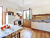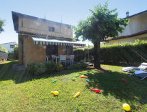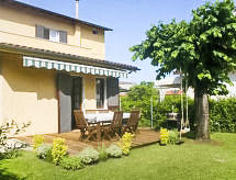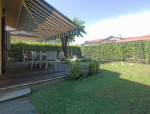 "Alessandro", villa 4 locali 120 m2 su 2 piani. Arredamento confortevole e gradevole: soggiorno/sala da pranzo con TV (satellite) (schermo piatto), DVD. Uscita sulla veranda. 1 camera con 2 letti. Cucina (4 punti cottura, forno, lavastoviglie, forno a microonde, congelatore) con tavolo da pranzo. Uscita sulla veranda. 2 doccia/bidè/WC. Piano superiore: 1 camera matrimoniale con TV e climatizzazione. Uscita sul balcone. 1 camera matrimoniale con climatizzazione. Bagno/bidè/WC, vasca idromassaggio. Riscaldamento a gas (extra). Balcone, terrazza, posto a sedere all’aperto, giardino. Mobili da terrazza. Vista sul giardino. A disposizione: lavatrice, cassaforte, ferro da stiro, asciugacapelli. Internet (wifi, gratis). 1 animale/cane consentito. Letti fatti all'arrivo. Smart TV.- Le caratteristiche dell'alloggio