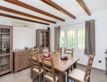 Mas Pere 2 km da Calonge: Casa "Ami". Fuori dalla località, a 2 km dal centro di Calonge, posizione soleggiata, zona a traffico limitato, a 7 km dal mare. Per uso privato: giardino terrazzato (recintato) con prato 500 m2, piscina ad angolo (6 x 3 m, profondità 100 - 200 cm, disponibilità stagionale: 01.Gen. - 31.Dic.) con scaletta. Pergola, mobili da giardino, barbecue. Accesso 2.6 km di strada molto sterrata fino alla casa. Parcheggio nella proprietà. Supermercato 3 km, ristorante 2 km, bar 2 km, spiaggia sabbiosa "Sant Antoni de Calonge" 7 km. Porto turistico 7 km, campo da golf 7 km, maneggio 13 km. Attrazioni nelle vicinanze: Waterpark Aquadiver 10 km. Prego notare: auto consigliata. Adatto alle famiglie. Il proprietario non accetta gruppi. Il proprietario non accetta gruppi di giovani.Interior