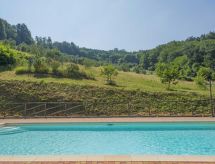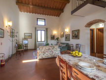 Casa padronale "Il Casale". 4 appartamenti nella proprietà. A 8 km dal centro di Montecatini Terme, a 35 km dal centro di Lucca, a 44 km dal centro di Firenze, su una strada. In comune: giardino, piscina (12 x 6 m, profondità 140 cm di profondità, disponibilità stagionale: 20.Mag. - 30.Set.). Doccia esterna, mobili da giardino, barbecue. Nella casa: accesso ad internet, wifi, Riscaldamento da pagare in loco, riscaldamento utilizzabile dal 01.11. al 15.04.. Parcheggio nella proprietà. Negozio 8 km, negozio alimentare 1 km, supermercato 8 km, ristorante 1 km, bar 1 km, stazione ferroviaria "Masotti" 2 km, spiaggia sabbiosa "Versila" 62 km, piscina termale "Montecatini Terme" 8 km. Campo da golf 8 km, tennis 4 km. Attrazioni nelle vicinanze: Pistoia 8 km, Uzzano 18 km, Montecarlo 22 km, Pescia 24 km, Collodi 26 km. Vendita di prodotti agricoli locali.Interior