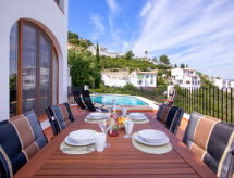 "Britten", casa 2 locali 87 m2, al piano seminterrato. Arredamento gradevole e di buon gusto: soggiorno/sala da pranzo con climatizzazione e riscaldamento di aria calda. Uscita sulla terrazza, sulla piscina. 1 camera con 1 letto (90 cm, lunghezza 190 cm), 1 letto matrimoniale (140 cm, lunghezza 190 cm), ventilatore. Grande cucina aperta (forno, lavastoviglie, 3 piastre cottura in vetroceramica, tostapane, bollitore elettrico, forno a microonde, congelatore, macchina da caffè elettrica). Bagno/WC. Grande terrazza. Mobili da terrazza, barbecue, sedie a sdraio. Magnifica vista panoramica sul mare, sulle montagne e sulla valle. A disposizione: lavatrice, ferro da stiro, zanzariere, seggiolone, lettino per bimbi, asciugacapelli. Internet (wifi, gratis). Parcheggio. R000000001- Strutture