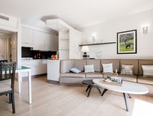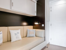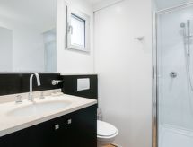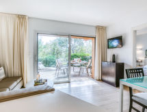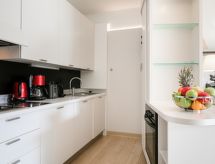 Apt. di 3 locali 55 m2, al pianterreno. Arredamento gradevole e moderno: soggiorno/sala da pranzo con TV e schermo piatto. 1 camera con 1 letto matrimoniale (160 cm, lunghezza 200 cm). Uscita sulla terrazza. 1 camera con 2 letti (80 cm, lunghezza 200 cm). Ingresso con 1 letto (90 cm, lunghezza 190 cm). Angolo cottura (forno, lavastoviglie, 2 piastre cottura in vetroceramica, tostapane, bollitore elettrico, forno a microonde, congelatore, macchina da caffè elettrica, capsule per la macchina da caffè (Nespresso et filtre) extra). Doccia/WC. Riscaldamento, climatizzazione. Terrazza 10 m2. Mobili da terrazza, sedie a sdraio (1). A disposizione: lavatrice, asciugatrice, ferro da stiro, asciugacapelli. Internet (wifi, gratis). Prego notare: appartamento per non fumatori. Allarme antifumo.- Le caratteristiche dell'alloggio
