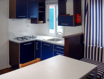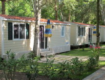 4 locali casa mobile 32 m2. Arredamento funzionale: soggiorno/sala da pranzo con tavolo da pranzo. 1 camera con 1 letto doppio. 2 camere, ogni camera con 2 letti. Angolo cottura (4 fuochi, congelatore). Doccia, WC separato. Riscaldamento elettrico, climatizzazione. Terrazza coperta. Mobili da terrazza, sedie a sdraio (1).- Strutture