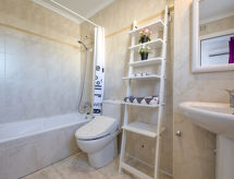 "Campoverde", casa a schiera 4 locali 140 m2 su 3 piani. Arredamento molto gradevole e accogliente: soggiorno/sala da pranzo con TV (satellite), climatizzazione e riscaldamento di aria calda. Uscita verso il posto a sedere all’aperto, sulla piscina. Cucina (forno, lavastoviglie, 4 piastre cottura in vetroceramica, forno a microonde, congelatore, macchina da caffè elettrica). Doccia/WC. Piano superiore: 1 camera con 1 letto matrimoniale (160 cm, lunghezza 190 cm), bagno/WC (privato) climatizzazione e riscaldamento di aria calda. Uscita sulla terrazza. 1 camera con 1 letto matrimoniale (150 cm, lunghezza 190 cm), climatizzazione e riscaldamento di aria calda. 1 camera con 1 x 2 letti a castello (90 cm, lunghezza 190 cm). Bagno/WC. 3 terrazze. Mobili da terrazza, barbecue. A disposizione: lavatrice, ferro da stiro, seggiolone, lettino per bimbi, asciugacapelli. Internet (wifi, gratis). Parcheggio. VT-485664-A- Attività nelle vicinanze
