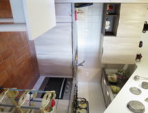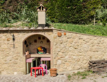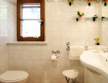 Casa 3 locali 60 m2 su 2 piani. Oggetto adatto a 2 adulti + 1 bambino. Arredamento di buon gusto e accogliente: soggiorno/camera con 1 divano letto e TV. Uscita sul giardino. Cucina (mini-forno, forno, lavastoviglie, 4 fuochi, bollitore elettrico, congelatore) con tavolo da pranzo, camino (solo con funzione decorativa). Doccia/WC. Riscaldamento a gas (extra). Piano superiore: 1 camera con 1 letto (80 cm), 1 letto doppio. 2 terrazze. Mobili da terrazza, barbecue, sedie a sdraio. Splendida vista panoramica sulle montagne e sulla valle. A disposizione: seggiolone, lettino per bimbi fino 2 anni. Internet (wifi, extra). Prego notare: appartamento per non fumatori. La disposizione dei letti è flessibile. Sono disponibili più posti letto rispetto al numero massimo di persone consentito che, tuttavia, non può essere superato.- Strutture