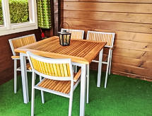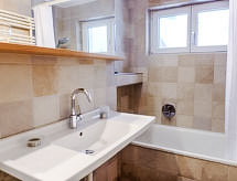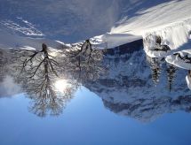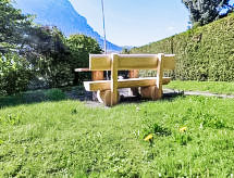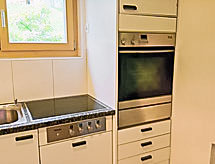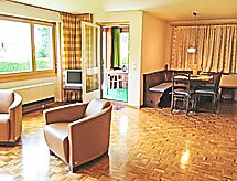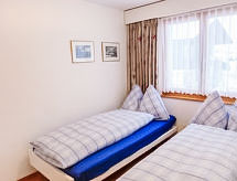 Apt. di 3 locali 73 m2, piano rialzato, esposizione sud. Luminoso, arredamento accogliente: soggiorno/camera con finestra panoramica con 1 divano letto doppio (2 x 90 cm, lunghezza 200 cm), tv con canali internazionali e schermo piatto. Uscita sul balcone, sulla loggia, verso il posto a sedere all’aperto, esposizione sud e esposizione ovest. 2 camere, ogni camera con 2 letti (90 cm, lunghezza 200 cm). Cucina (forno, lavastoviglie, 4 piastre cottura in vetroceramica, forno a microonde, macchina da caffè elettrica, set per raclette) con passavivande, boiler (20 litri). Bagno, WC separato. Riscaldamento elettrico, boiler (300 litri). Pavimenti in parquet. Posto a sedere all’aperto, esposizione sud e esposizione ovest. Mobili da balcone. Magnifica vista panoramica sulle montagne. A disposizione: asciugacapelli. Internet (wifi, gratis). Autorimessa, altezza 210 cm, larghezza 220 cm. Prego notare: appartamento per non fumatori. Estintore.- Strutture