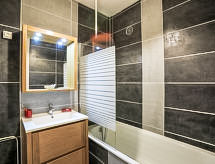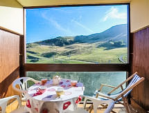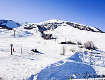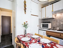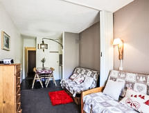 Monolocale 23 m2 al 9. piano, esposizione sud. Arredamento funzionale e gradevole: soggiorno/camera con 2 letti (90 cm, lunghezza 190 cm), 1 divano letto doppio (140 cm, lunghezza 190 cm), TV (schermo piatto), radio e DVD. Uscita sul balcone. Angolo cottura (2 punti cottura, forno, lavastoviglie, tostapane, bollitore elettrico, forno a microonde, macchina da caffè elettrica, set per raclette, set per fondue (formaggio)). Bagno/WC. Riscaldamento elettrico. Moquette. Balcone 5 m2, esposizione sud. Mobili da balcone, sedie a sdraio (1). Splendida vista sulle montagne e sulla pista da sci. A disposizione: ferro da stiro, asciugacapelli. Internet (wifi, extra). Prego notare: appartamento per non fumatori. Allarme antifumo.- Strutture