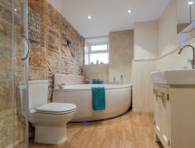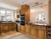 Casa 5 locali su 2 piani. Spazioso e luminoso, arredamento confortevole e di buon gusto: soggiorno aperto con TV, schermo piatto e DVD. 2 camere matrimoniali, ogni camera con 1 letto doppio e TV (schermo piatto). Cucina aperta (4 punti cottura, forno, forno a microonde, congelatore) con tavolo da pranzo. Bagno. Riscaldamento. Piano superiore: 1 camera matrimoniale con 1 letto doppio, doccia/WC e TV (schermo piatto). 1 camera con 2 letti. Bagno/doccia/WC. Riscaldamento. Mobili da terrazza. Bella vista sul giardino. A disposizione: lavatrice, asciugatrice. Internet (wifi, gratis). Prego notare: casa per non fumatori.- Le caratteristiche dell'alloggio