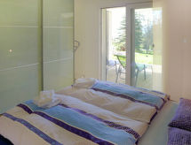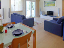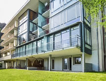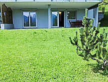 Apt. di 2 locali 54 m2, al pianterreno. Arredamento confortevole e gradevole: soggiorno/sala da pranzo con TV (via cavo), DVD e tapparelle elettriche. Uscita sul giardino, sulla terrazza, esposizione sud. 1 camera con 1 letto matrimoniale (160 cm, lunghezza 200 cm). Cucina aperta (forno, 4 piastre cottura in vetroceramica, tostapane, bollitore elettrico, forno a microonde, congelatore, macchina da caffè elettrica, capsule per la macchina da caffè (NESPRESSO) extra, set per raclette, set per fondue (chinoise, formaggio)). Doccia/WC. Pavimenti in parquet. Grande terrazza. Mobili da terrazza, sedie a sdraio (2). Bella vista sulle montagne e sul giardino. A disposizione: lavatrice, asciugacapelli. Internet (wifi, gratis). Prego notare: appartamento per non fumatori.- Strutture