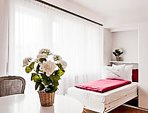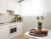 "Double Room" monolocale 35 m2 al 2. piano, esposizione sud. Arredamento funzionale: soggiorno/sala da pranzo con 2 letti ad armadio, TV (satellite) e radio. (4 punti cottura, forno, lavastoviglie, macchina da caffè elettrica, capsule per la macchina da caffè (Nespresso) extra). Bagno/WC. Balcone, esposizione sud. Mobili da terrazza. A disposizione: Internet (wifi, gratis). Prego notare: appartamento per non fumatori. Massimo 1 animale/cane consentito.- Strutture