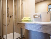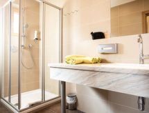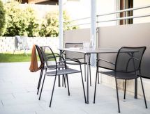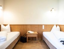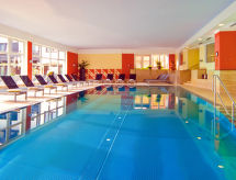 "Edith (IST100)", apt. di 3 locali 66 m2, al pianterreno. Luminoso, arredamento gradevole e di buon gusto: soggiorno/camera con 1 divano letto doppio, tavolo da pranzo e TV (via cavo). Uscita sulla terrazza. 1 camera matrimoniale. 1 camera con 2 letti. Cucina aperta (forno, lavastoviglie, 4 piastre cottura in vetroceramica, tostapane, bollitore elettrico, forno a microonde, congelatore, macchina da caffè elettrica). Doccia, WC separato. Riscaldamento a pavimento. Pavimenti in parquet. Terrazza. Mobili da terrazza. Laterale vista panoramica sulle montagne. A disposizione: lettino per bimbi, asciugacapelli. Internet (wifi, gratis). Parcheggio (2 Auto). 1 animale/cane consentito. La piscina coperta, l'area benessere e il ristorante si trovano nell'Hotel Hirschen (ca. 500 m).- Strutture