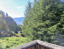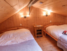 Casa 2 locali 50 m2 su 3 piani. Soggiorno/sala da pranzo con TV. Angolo cottura (4 punti cottura, forno, lavastoviglie, bollitore elettrico, macchina da caffè elettrica). WC separato. Piano inferiore: 1 camera con 1 letto matrimoniale (140 cm, lunghezza 190 cm). Bagno. Piano superiore: (scala ripida) soppalco mansardato con abbaino con 2 letti matrimoniali (2 x 140 cm, lunghezza 190 cm). Riscaldamento elettrico. Terrazza, esposizione sud-ovest. Mobili da terrazza. Bella vista sulle montagne. A disposizione: Internet (wifi, extra). Prego notare: senza parcheggio. Massimo 1 animale/cane consentito. Canali TV soltanto in FR. Allarme antifumo.- Strutture