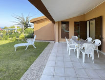"Fella", casa a schiera 3 locali 65 m2. Soggiorno/sala da pranzo con 1 divano letto doppio e climatizzazione. Uscita verso il posto a sedere all’aperto. 1 camera matrimoniale. 1 camera con 2 letti. Soppalco con 2 letti. Angolo cottura (4 punti cottura, forno, congelatore). 2 doccia/bidè/WC. Mobili da terrazza, barbecue. A disposizione: lavatrice.- Strutture