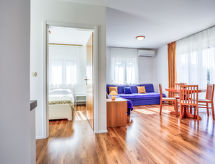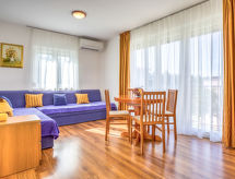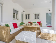 Casa plurifamiliare "File". Nella frazione Zambratija, a 3 km dal centro di Umag, a 300 m dal mare, a 300 m dalla spiaggia, in una strada senza uscita. In comune: terreno 1'000 m2 (recintato) con prato 100 m2, piante, piscina (7 x 4 m, profondità 140 cm di profondità, disponibilità stagionale: 01.Mag. - 15.Set.). Doccia esterna, terrazza (50 m2), mobili da giardino, barbecue. Nella casa: wifi, tennis da tavolo. Parcheggio presso la casa. Negozio 500 m, ristorante 100 m, spiaggia ciottolosa 600 m, spiaggia ghiaiosa, spiaggia rocciosa 300 m, stabilimento balneare 600 m. Centro sportivo 600 m, parco giochi 50 m. Prego notare: il proprietario vive sullo stesso terreno. Ulteriori alloggi prenotabili. WIFI velocita’ limitata. Spiaggia di sabbia, pianura inclinata 600 m. Stazione di partenza del trenino per Umag 600 m.Interior