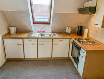 Apt. di 3 locali 50 m2, al piano superiore. Mansardato, arredamento accogliente: soggiorno/sala da pranzo con TV (satellite) (schermo piatto), radio e CD. Uscita sul balcone. 1 camera con 1 letto doppio (2 x 90 cm, lunghezza 200 cm). 1 camera piccola con 2 letti (90 cm, lunghezza 200 cm). Angolo cottura (4 punti cottura, forno, tostapane, bollitore elettrico, forno a microonde, macchina da caffè elettrica). Doccia/WC. Moquette. Piccolo balcone. Mobili da balcone. A disposizione: seggiolone (extra). Internet (wifi, gratis). Prego notare: appartamento per non fumatori. Allarme antifumo.- Strutture