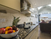 2 locali casa di campagna su 2 piani. Spazioso e luminoso, arredamento confortevole e di buon gusto: soggiorno aperto con 1 divano letto doppio, TV, schermo piatto e DVD. Cucina aperta (4 punti cottura, forno, forno a microonde, congelatore) con tavolo da pranzo. Bagno/doccia/WC. Riscaldamento. Piano superiore: 1 camera matrimoniale con 1 letto doppio. Riscaldamento. Mobili da terrazza. Bella vista sul mare. A disposizione: Internet (wifi, gratis). Prego notare: casa per non fumatori.- Le caratteristiche dell'alloggio