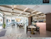 Condominio, moderno, confortevole "Grands-Suites Two Bedroom Family", costruito nel 2018. Dotazione della casa: sala fitness, ascensore, climatizzazione, reception 24h, sauna (in comune), lavatrice (in comune, extra), asciugatrice (in comune, extra). Parcheggio: parcheggio nei pressi della casa. Accessibile in auto tutto l'anno. Posizione: nel centro di Gzira-Sliema, fuori da La Valletta 6 km, posizione centrale, animata. La casa si affaccia sulla località. Dintorni della casa: piscina (in comune, lunghezza 6 m x larghezza 2 m, aperto da 01.01. fino a 31 .12.), piscina coperta (in comune, riscaldata, lunghezza 3 m x larghezza 2 m, aperto da 01.01. fino a 31 .12.). Infrastrutture e distanze: negozio 50 m, negozio alimentare 50 m, supermercato 200 m, ristorante 50 m, campo da golf 6.5 km. Prego notare, nelle vicinanze: un aeroporto a 10 km. Suites are equipped with bathtub or shower, hairdryer, make-up / shaving mirror, fully equipped kitchenette, Chromecast TV, direct-dial telephone, 220-240 V electricity with a minimum of one universal power outlet, in Room safe and air conditioning. Grands Suites Hotel Residences and Spa, offering a 4-star hotel experience excellence with modern state of the art design and technology, ideal also for extended stays. The hotel’s 231 suites range from, The Infinity Rooftop pool which exclusively accessible for in-house guests only and the Eleven Eleven Rooftop beach club, bars and restaurant soon to be open offer spectacular views of Marsamxett harbour, Valletta ‘Carmelite Basilica’ and Manoel island. WELLNESS: ase Spa promotes a unique and wonderful environment for relaxing and pampering purposes by offering luxury facilities which include a heated indoor pool, fitness centre, relaxation room, sauna and steam room both hotel guests and outsiders are welcome to our spa. We provide a globally modern and ancient knowledge of well-being and the return to natural methods of rehabilitation and health through its unique signature holistic therapies. Our mission is to be a reference point for well-being and beauty in Malta through the combination of ancient and worldwide treatments, packages, and luxury beauty products by Phytomer where our guests mind and body needs can be met. We highly recommend booking your treatment in advance to ensure that your preferred time and service is available. Opening hours : Spa Facilities : 09:00 am – 09:00 pm / Spa Services : 10:30 am – 07:00 pm / Fitness centre : 24 hours.Interior
