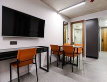 Apt. di "ID8", 3 locali per 4 persone, 55 m2, arredamento moderno e accogliente. Soggiorno/camera con TV (via cavo) e tavolo da pranzo. Non permesso fumare. Internet (wifi). Camera da letto con 1 letto doppio. Camera da letto con 1 letto doppio. Angolo cottura con 2 punti cottura e frigorifero. Doccia/WC. Terrazza 3 m2, mobili da terrazza. Altre dotazioni: cassaforte, asciugacapelli. The Family Suite affords an urban view and a balcony or terrace with outdoor furniture. The Family Suite s equipped with a wardrobe, and has a fully equipped kitchenette. The Family Suite consists 3 sep. rooms total , thereof 1. bedroom with a king-size bed and 2. bedroom with a double bed . It also has a living room zone and dining area. This Suite includes a bathroom with shower for the ultimate comfort. Suites afford an urban view and a balcony with outdoor furniture. RFID Door Locks, Living Room, Soundproofing, 50“ Chromecast TV, In Room Safe, Sofa, Self Controlled Heater, Air Conditioning, Smoke Detector, Clock, Terrace or Balcony, Telephone, Complimentary Wifi Access, Dining Table, Work Desk, Micro Oven, Box Room, Pots and Pans, Waste and Recycle Room, Induction Hob, Laundry Room, Glassware, Laundry Service*, Electric Kettle, Toaster **, Hair Dryer, Cutlery, Toiletries, Refrigerator, Anti Fog Mirror, Parking *, Iron and Board **, *Charges Applicable, ** On Request only on the spot.The web-photos are just an example. These can vary slightly to the actual booked apartments of the Hotel. Layout and Suite Sizes may slightly vary.- Le caratteristiche dell'alloggio