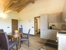 Monolocale Loft 70 m2. Spazioso e luminoso, arredamento molto di buon gusto: soggiorno/camera grande, aperto con 1 letto doppio, camino e TV (schermo piatto). Angolo cottura (forno, lavastoviglie, 4 piastre ad induzione, tostapane, bollitore elettrico, macchina da caffè elettrica). Doccia/bidè/WC. Riscaldamento elettrico, climatizzazione. Pavimenti in legno. Posto a sedere all’aperto. Mobili da terrazza, barbecue (portatile). A disposizione: seggiolone, lettino per bimbi fino 2 anni, asciugacapelli. Internet (wifi, gratis). Parcheggio (recintato, 1 Auto) vicino alla casa. smart tv.- Strutture