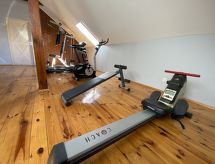 "Hamptons", casa 8 locali 220 m2 su 3 piani. In parte mansardata, arredamento funzionale e moderno: soggiorno/sala da pranzo con 1 divano letto, TV (satellite), video e DVD. Uscita sul giardino, sulla terrazza. (forno, lavastoviglie, 4 piastre cottura in vetroceramica, forno a microonde, congelatore, grill) con tavolo da pranzo. Doccia/WC. Riscaldamento a gas. Piano superiore: 1 camera con 1 letto matrimoniale. 1 camera con 1 letto matrimoniale. 1 camera con 1 letto matrimoniale. 1 camera con 2 letti e 1 divano letto. Doccia/WC. Riscaldamento a gas. 2. piano superiore: 1 camera mansardata con 2 letti. 1 camera mansardata con 2 letti. Stanza da gioco con 1 divano letto e TV (satellite). Balcone 6 m2, 2 terrazze 12 m2. Mobili da terrazza, posto a sedere. A disposizione: Internet (wifi). Parcheggio vicino alla casa.- Strutture