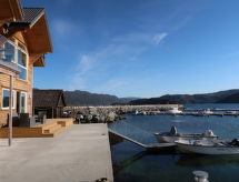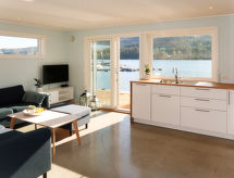 "Huglavika (FJH666)", apt. di 3 locali 70 m2, al pianterreno. Arredamento moderno e accogliente: soggiorno/sala da pranzo con tavolo da pranzo, TV e DVD. Uscita sulla terrazza. 2 camere, ogni camera con 2 letti (90 cm, lunghezza 200 cm). Cucina aperta (forno, lavastoviglie, 4 piastre ad induzione, tostapane, bollitore elettrico, forno a microonde, congelatore, macchina da caffè elettrica). Doccia/WC. Riscaldamento elettrico, riscaldamento a pavimento. Terrazza. Mobili da terrazza, barbecue (portatile). Vista Langenuenfjord. A disposizione: lettino per bimbi. Internet (wifi, gratis). Prego notare: casa per non fumatori. Massimo 1 animale/cane consentito. Allarme antifumo, estintore. 924531169- Strutture