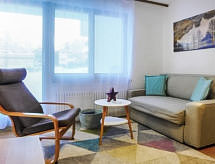 Monolocale 30 m2, al pianterreno, esposizione sud. Luminoso, in parte nel 2017, arredamento semplice e accogliente: soggiorno/camera con 2 letti ribaltabili doppio (2 x 90 cm, lunghezza 200 cm), TV. Uscita sul giardino, sulla terrazza. Cucina aperta (3 punti cottura, forno, tostapane, bollitore elettrico, congelatore, macchina da caffè elettrica, set per fondue (formaggio)) con tavolo da pranzo. Doccia/WC. Riscaldamento. Terrazza, esposizione sud. Mobili da terrazza. Bella vista sulle montagne. A disposizione: asciugacapelli. Internet (wifi, gratis). Prego notare: appartamento per non fumatori.- Strutture
