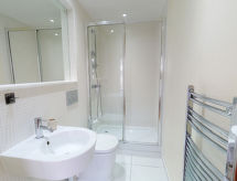 "Indescon Square", apt. di 3 locali. Arredamento moderno e di buon gusto: soggiorno/sala da pranzo con tavolo da pranzo e TV (schermo piatto). Uscita sul balcone. 2 camere matrimoniali, ogni camera con 1 letto doppio e bagno/doccia/WC. Cucina (4 punti cottura, forno, lavastoviglie, tostapane, bollitore elettrico, congelatore, microonde combinato). Riscaldamento. Pavimenti in legno. Grande balcone. Vista sul giardino. A disposizione: lavatrice, asciugatrice, lettino per bimbi fino 2 anni (extra), asciugacapelli. Internet (wifi, gratis). Prego notare: adatto alle famiglie. Canali TV soltanto in EN. Allarme antifumo, estintore.- Le caratteristiche dell'alloggio