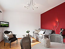 "Junior Suite", apt. di 2 locali 50 m2 al 1. piano, esposizione sud. Arredamento funzionale: soggiorno/sala da pranzo con 1 divano letto doppio, TV (satellite) e radio. 1 camera matrimoniale. Cucina (4 punti cottura, forno, lavastoviglie, macchina da caffè elettrica, capsule per la macchina da caffè (Nespresso) extra). Bagno/WC. Balcone. Mobili da terrazza. A disposizione: Internet (wifi, gratis). Prego notare: appartamento per non fumatori. Massimo 1 animale/cane consentito.- Strutture