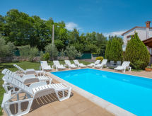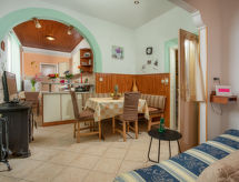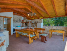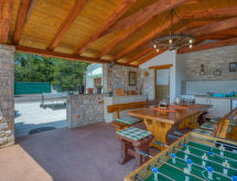 Casa bifamiliare "Kos (LBN343)", su 2 piani. Nel borgo Šumber, a 2.5 km dal centro di Nedešćina, a 7 km dal centro di Labin, a 9 km dal centro di Rabac, a 9 km dal mare. Per uso privato: terreno 3'000 m2 con alberi, prato, piscina ad angolo (8 x 4 m, profondità 135 cm, disponibilità stagionale: 02.Mag. - 17.Ott.). WC nell'area piscina, doccia esterna, tennis da tavolo, campo da badminton, patio, terrazza, mobili da giardino, barbecue, spazio giochi per bambini (scivolo, altalena). Nella casa: accesso ad internet, calcio balilla, trampolino, lavatrice (extra). Parcheggio nella proprietà. Negozio 2.5 km, supermercato 7 km, ristorante 2.5 km, spiaggia ciottolosa 9 km, spiaggia rocciosa 9 km. Porto turistico 9 km. Gruppi di adolescenti non sono ammessi.Interior