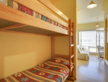 Monolocale 18 m2 al 3. piano, esposizione nord-ovest. Oggetto adatto a 2 adulti + 2 bambini. Arredamento semplice e funzionale: soggiorno/sala da pranzo con 1 divano letto doppio (1 x 140 cm, lunghezza 190 cm), TV (schermo piatto). Uscita sul balcone. Alcova con 1 x 2 letti a castello (80 cm, lunghezza 190 cm). Cucina aperta (2 punti cottura, tostapane, bollitore elettrico, macchina da caffè elettrica, microonde combinato). Doccia/WC. Riscaldamento elettrico. Piccolo balcone 5 m2. Mobili da balcone. Bella vista. A disposizione: ferro da stiro, asciugacapelli. Prego notare: allarme antifumo.- Le caratteristiche dell'alloggio