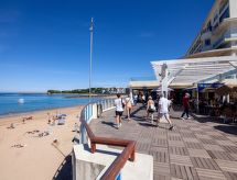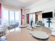 Monolocale 38 m2 al 1. piano, esposizione ovest. Arredamento funzionale e confortevole: soggiorno/sala da pranzo 27 m2 con 1 letto doppio ad armadio (1 x 140 cm, lunghezza 190 cm), TV (schermo piatto). Uscita sul balcone. Alcova con 1 letto matrimoniale (140 cm), lavabo e doccia. Cucina aperta (forno, lavastoviglie, 4 piastre cottura in vetroceramica, tostapane, bollitore elettrico, forno a microonde, congelatore, macchina da caffè elettrica). WC separato. Riscaldamento elettrico. Piccolo balcone 6 m2, esposizione ovest. Mobili da balcone, barbecue elettrico. Magnifica vista sul mare. A disposizione: ferro da stiro, asciugacapelli. Internet (wifi, gratis). Parcheggio (coperto). Prego notare: allarme antifumo. Ristorante nelle vicinanze. Luogo animato nel periodo estivo. Ristorante vicino che puo causare rumore in estate.- Le caratteristiche dell'alloggio