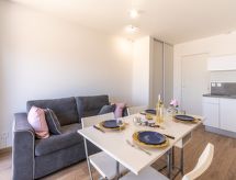 Residence "La Santa Maria", su 2 piani. Fuori dalla località, a 4 km dal centro di Grau du Roi, a 800 m dal mare, a 800 m dalla spiaggia. Parcheggio. Negozio 300 m, supermercato 2 km, shopping center, ristorante 300 m, spiaggia sabbiosa "Plage Sud" 700 m, piscina coperta 2.5 km, piscina termale "Thalazur Les Bains de Camargue" 900 m. Porto turistico 1 km, porto turistico 20 m, tennis 1.2 km. Attrazioni nelle vicinanze: Seaquarium 2 km, Casino Flamingo 2 km, Aigues-Mortes 9 km, La Grande Motte 12 km, Saintes-Maries-de-la-Mer 39 km, Nîmes 52 km. Sentieri escursionistici: Réserve Naturelle de Camargue. Prego notare: aeroporto 25 km dalla casa.Interior