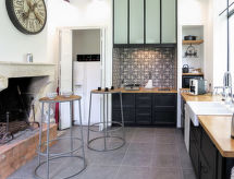 "La Vertheuillaise (VHL100)", casa 2 locali 80 m2 su 2 piani. Luminoso, arredamento gradevole e accogliente: soggiorno/sala da pranzo con tavolo da pranzo, radio e CD. Uscita sul giardino. Grande cucina (lavastoviglie, 2 piastre cottura in vetroceramica, tostapane, bollitore elettrico, forno a microonde, congelatore, macchina da caffè elettrica) con camino (solo con funzione decorativa). Uscita sul giardino. Doccia/WC, lavabo doppio. Piano superiore: soppalco mansardato, aperto con 2 letti (90 cm, lunghezza 190 cm). 1 camera mansardata, aperta con abbaino con 1 letto matrimoniale (140 cm, lunghezza 190 cm). Riscaldamento elettrico. Mobili da terrazza, sedie a sdraio (4), ripostiglio. A disposizione: ferro da stiro. Internet (wifi, gratis). Prego notare: casa per non fumatori. Allarme antifumo.- Strutture