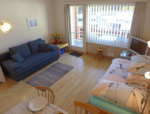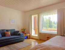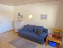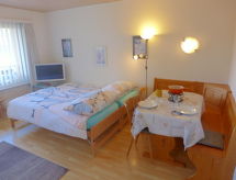 Monolocale 32 m2 al 2. piano. Soggiorno/sala da pranzo con 1 letto estraibile (2 pers. 2 x 90 cm, lunghezza 200 cm), TV (via cavo) (schermo piatto). Cucina (3 punti cottura, forno, tostapane, bollitore elettrico, macchina da caffè elettrica, capsule per la macchina da caffè (NESPRESSO) extra, set per fondue (formaggio)). Bagno/WC. Pavimenti in parquet. Balcone, esposizione ovest. Mobili da balcone. Bella vista sulle montagne e sul paesaggio. A disposizione: ferro da stiro, asciugacapelli. Internet (wifi, gratis). Prego notare: appartamento per non fumatori, senza parcheggio.- Le caratteristiche dell'alloggio