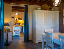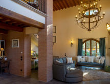 Situata alla periferia del borgo medievale di Montelopio all'incrocio delle province di Pisa, Siena e Firenze, la Villa si trova a breve distanza dalle città storiche ben conservate di San Gimignano e Volterra. Villa "Leopolda", 150 m s.l.m.. A 9.8 km dal centro di Peccioli, a 24 km dal centro di Volterra, a 35 km dal centro di San Gimignano, posizione tranquilla, soleggiata su una collina, a 45 km dal mare, immerso nel verde. Per uso privato: giardino 5'000 m2 (recintato), piscina (15 x 5 m, profondità 40 - 150 cm, disponibilità stagionale: 01.Mag. - 30.Ott.). Tennis da tavolo, mobili da giardino, barbecue, spazio giochi per bambini (altalena). Accesso fino alla casa (800 m strada non asfaltata). Parcheggio nella proprietà. Negozio alimentare 3.8 km, supermercato 3.8 km, ristorante 500 m, spiaggia sabbiosa "Marina di Cecina, Vada, Tirrenia" 45 km, spiaggia rocciosa "Castiglioncello" 60 km, piscina termale "Casciana Terme" 29 km. Campo da golf (18 buche) 13 km, tennis 7 km. Attrazioni nelle vicinanze: Lajatico 21 km, Chianni 25 km, San Miniato 45 km, Pisa 55 km, Lucca 57 km, Bolgheri 62 km. Idoneo per eventi. Corsi di cucina prenotabili su richiesta. Vendita di prodotti agricoli locali.Interior