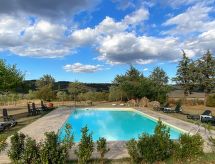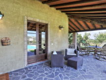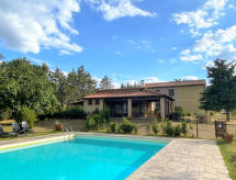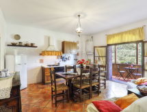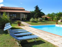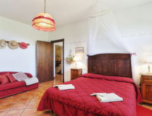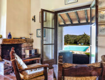 Agriturismo "Marzoli", su 2 piani, circondata da alberi e vigne. 4 appartamenti nel residence. A 8 km dal centro di Pomarance, a 25 km dal centro di Volterra, posizione tranquilla su una collina, a 39 km dal mare. In comune: terreno 70 ha, prato per sdraiarsi, piscina (7 x 12 m, profondità 140 cm di profondità, disponibilità stagionale: 15.Mag. - 15.Ott.). Doccia esterna, spazio giochi per bambini. Nella casa: lavatrice (extra) (in comune). Colazione su richiesta (extra). Parcheggio nella proprietà. Negozio 8 km, supermercato 8 km, piscina 20 km, piscina termale "Sasso Pisano" 30 km. Attrazioni nelle vicinanze: Pisa 90 km, San Gimignano 60 km, Siena 70 km, Firenze 100 km. Sul terreno allevamento di animali. Vendita di prodotti agricoli locali. Prego notare: il proprietario vive sullo stesso terreno. Possibilità di degustazioni della cucina tipica toscana, di vino e di olio. Visite guidate nella fattoria a piedi o in mountain bike e, per i più piccoli, è possibile incontrare gli animali della fattoria.Interior