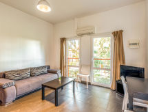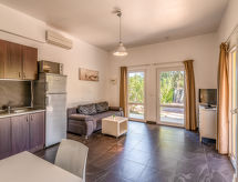 "Marina di Favone (FAV100)", apt. di 2 locali 46 m2, al pianterreno. Arredamento gradevole e moderno: soggiorno/camera con 1 divano letto doppio e TV (satellite). Uscita sul balcone, sulla terrazza. 1 camera con 1 letto matrimoniale. Angolo cottura (lavastoviglie, 4 piastre cottura in vetroceramica, tostapane, forno a microonde, macchina da caffè elettrica). Doccia/WC. Riscaldamento elettrico, climatizzazione. Balcone 20 m2 o terrazza 20 m2, coperta. Mobili da terrazza, mobili da balcone, sedie a sdraio (2). Prego notare: appartamento per non fumatori. Massimo 1 animale/cane consentito. Allarme antifumo, estintore. Annuncio di un partner commerciale ai sensi dell'articolo 155, IV, CGI- Strutture