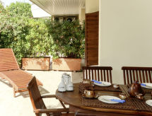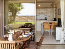 "Marina", apt. di 2 locali 55 m2, al pianterreno. Luminoso, arredamento moderno: soggiorno/camera con 1 divano letto doppio (160 cm), tavolo da pranzo e TV. Uscita sulla terrazza. 1 camera con 1 letto matrimoniale (160 cm). Uscita sulla terrazza. Cucina aperta (forno, lavastoviglie, 4 fuochi, tostapane, bollitore elettrico, congelatore). Doccia/WC. Riscaldamento elettrico, climatizzazione. Grande terrazza 50 m2 in parte coperta. Mobili da terrazza, barbecue (portatile), sedie a sdraio (2). Parziale vista sul mare. A disposizione: lavatrice, ferro da stiro, lettino per bimbi. Internet (wifi, gratis). Massimo 1 animale/cane consentito. CITRA: 008055-LT-0882- Strutture